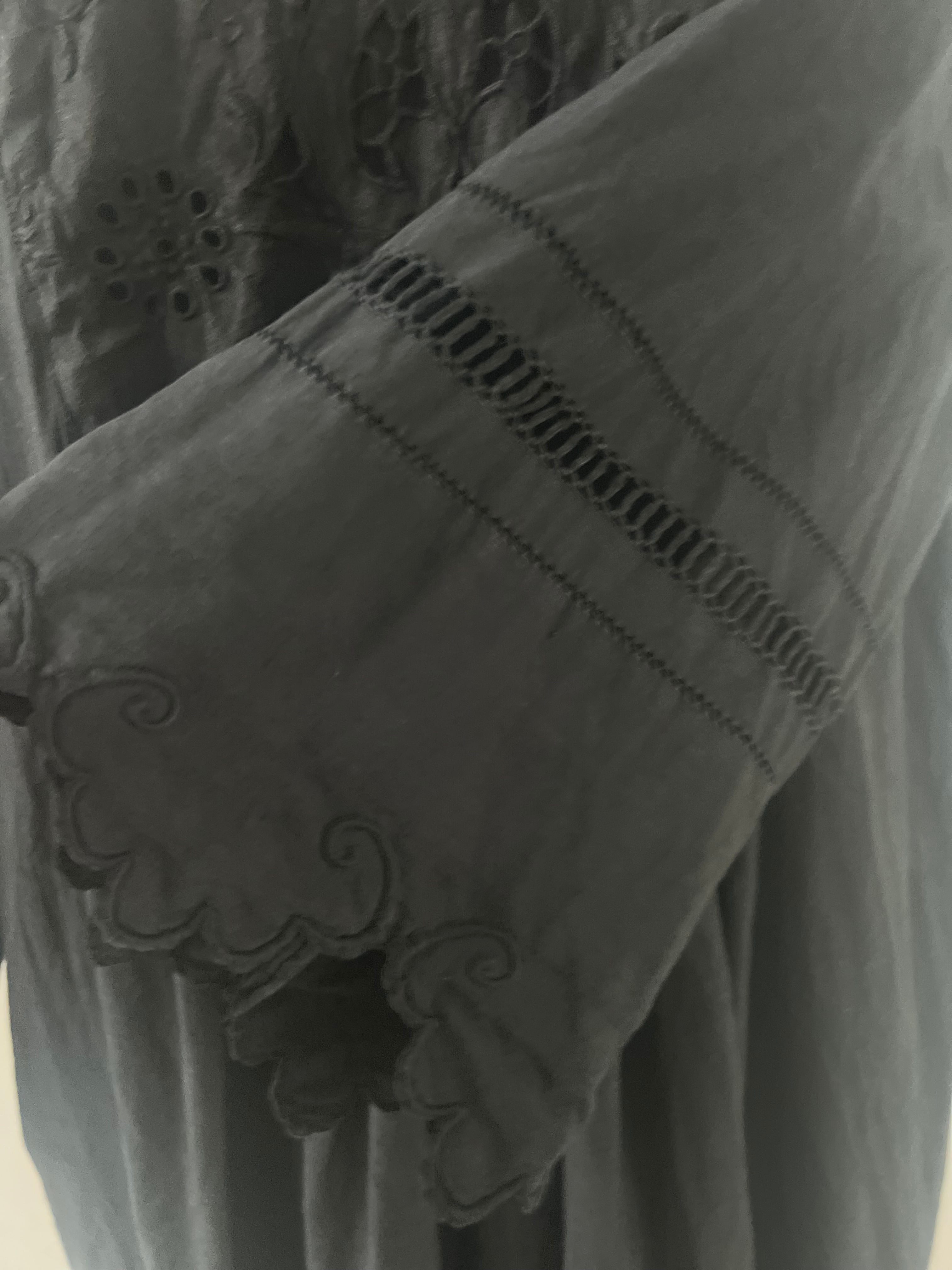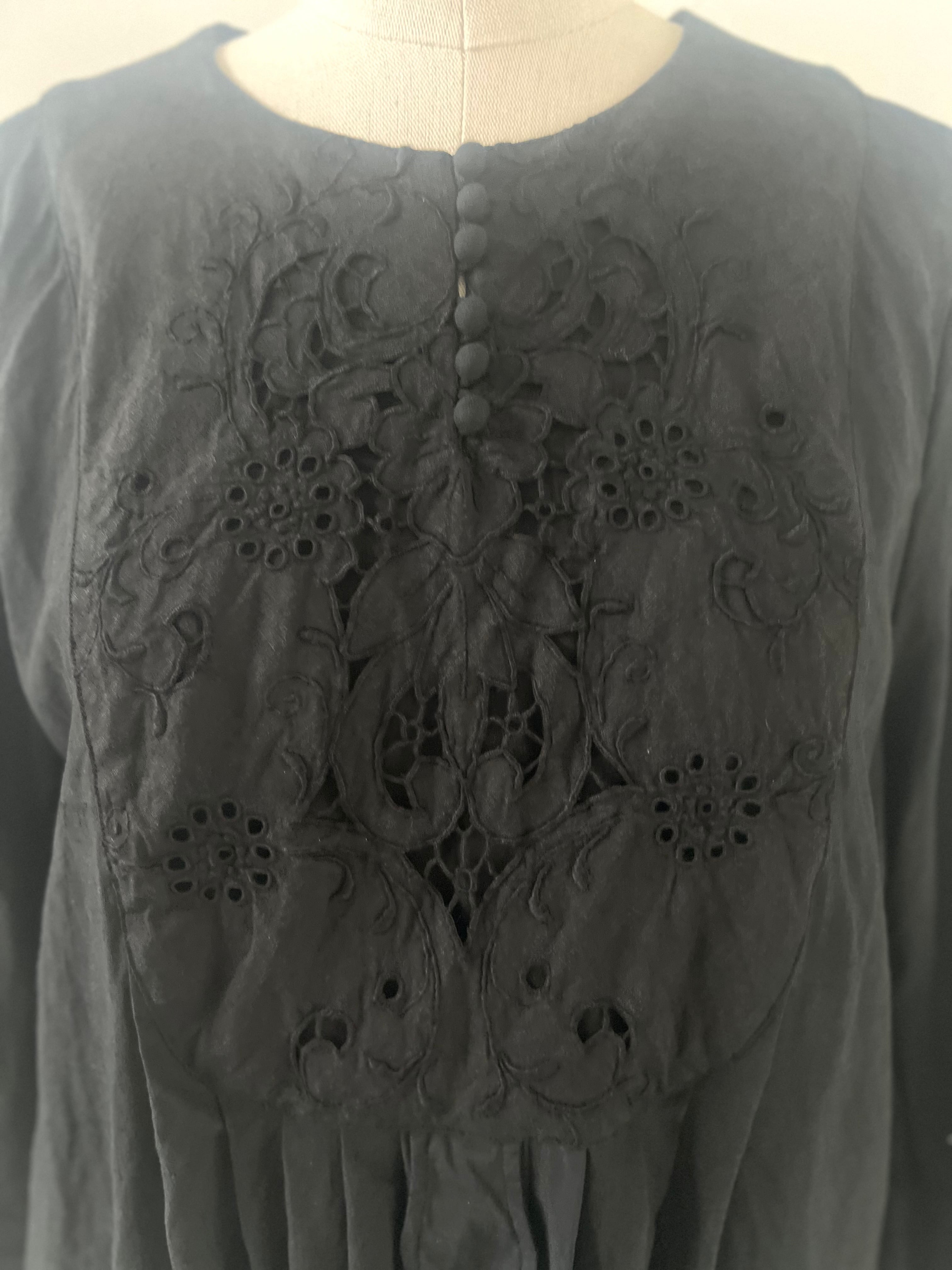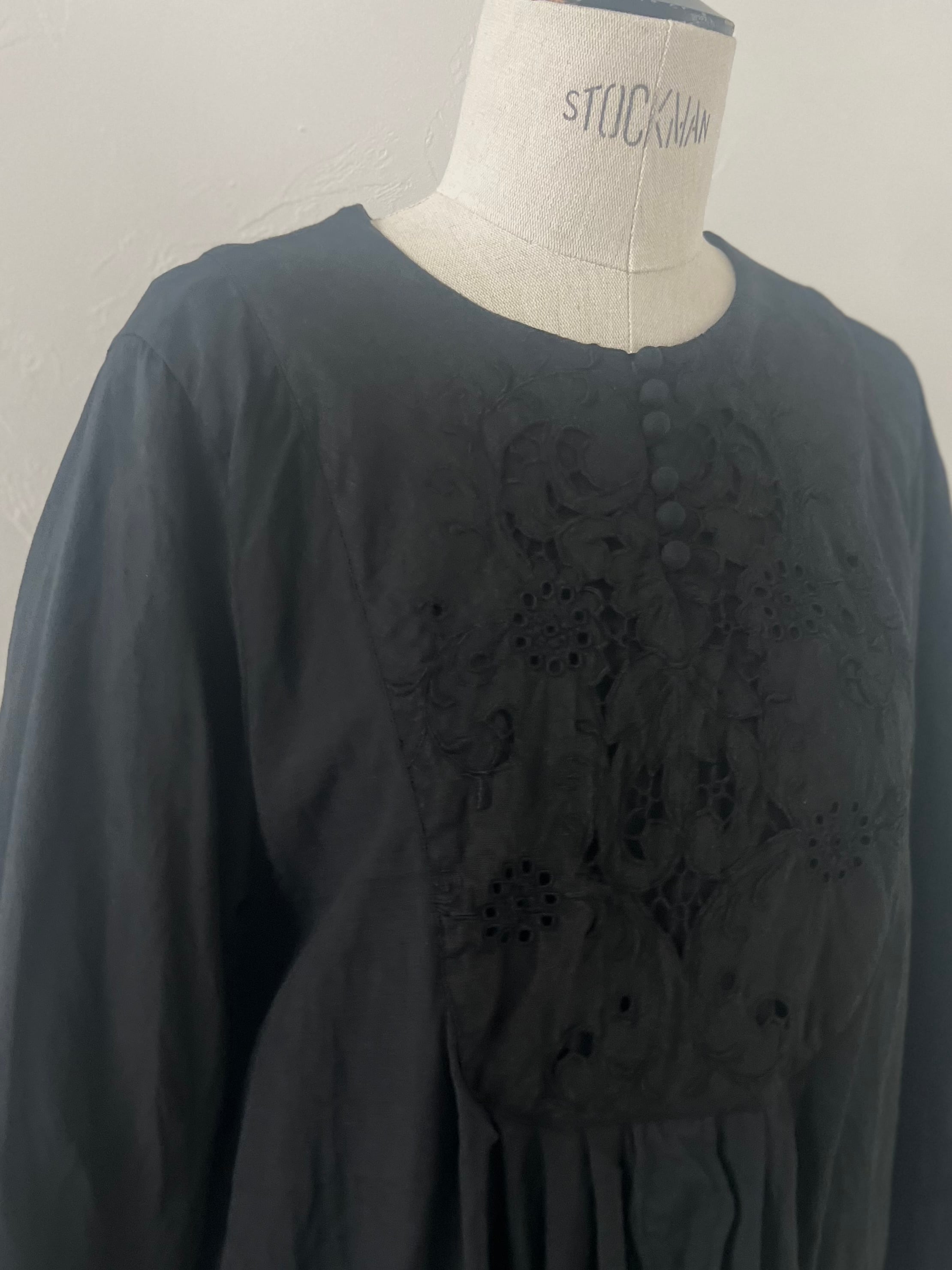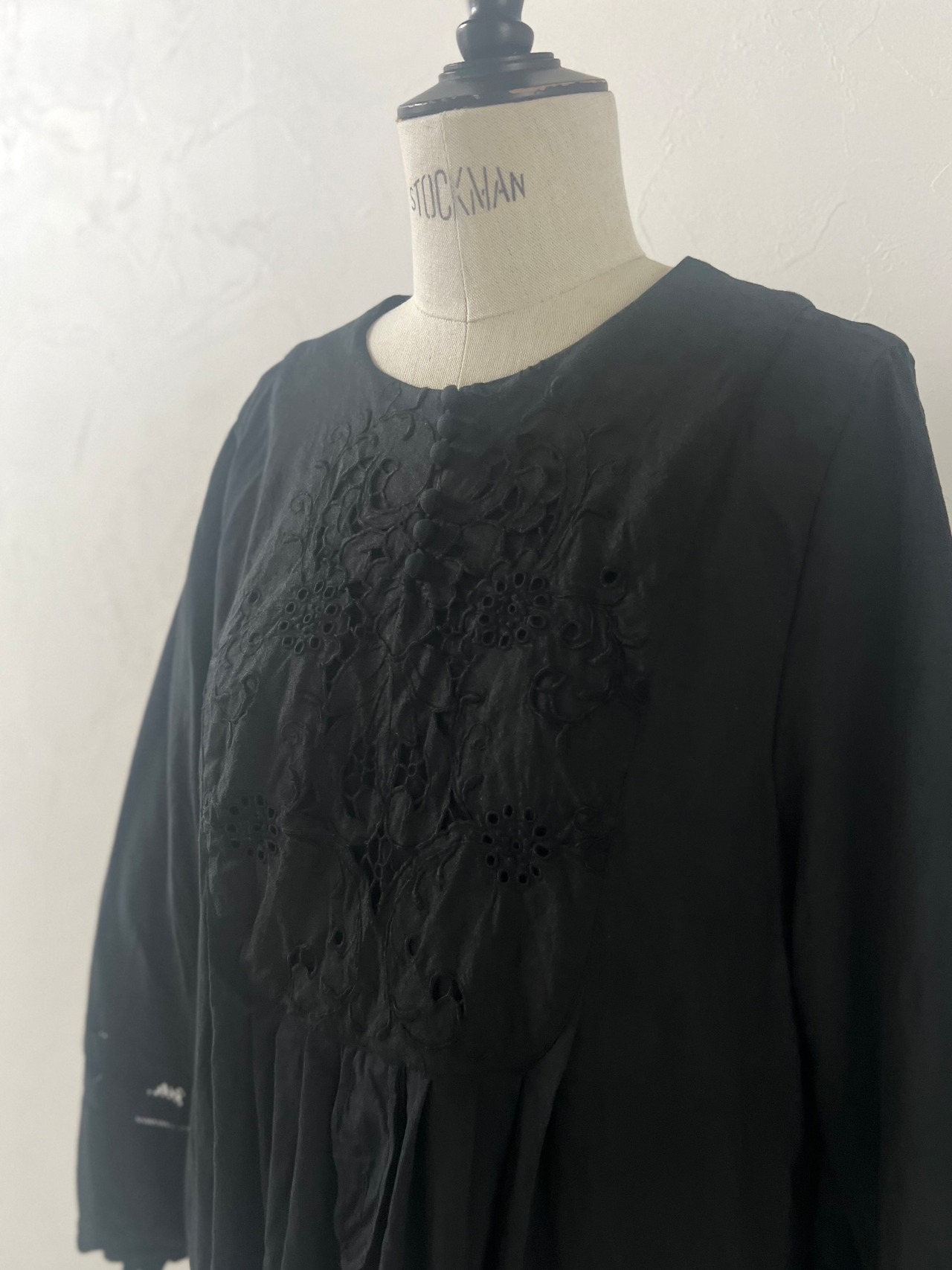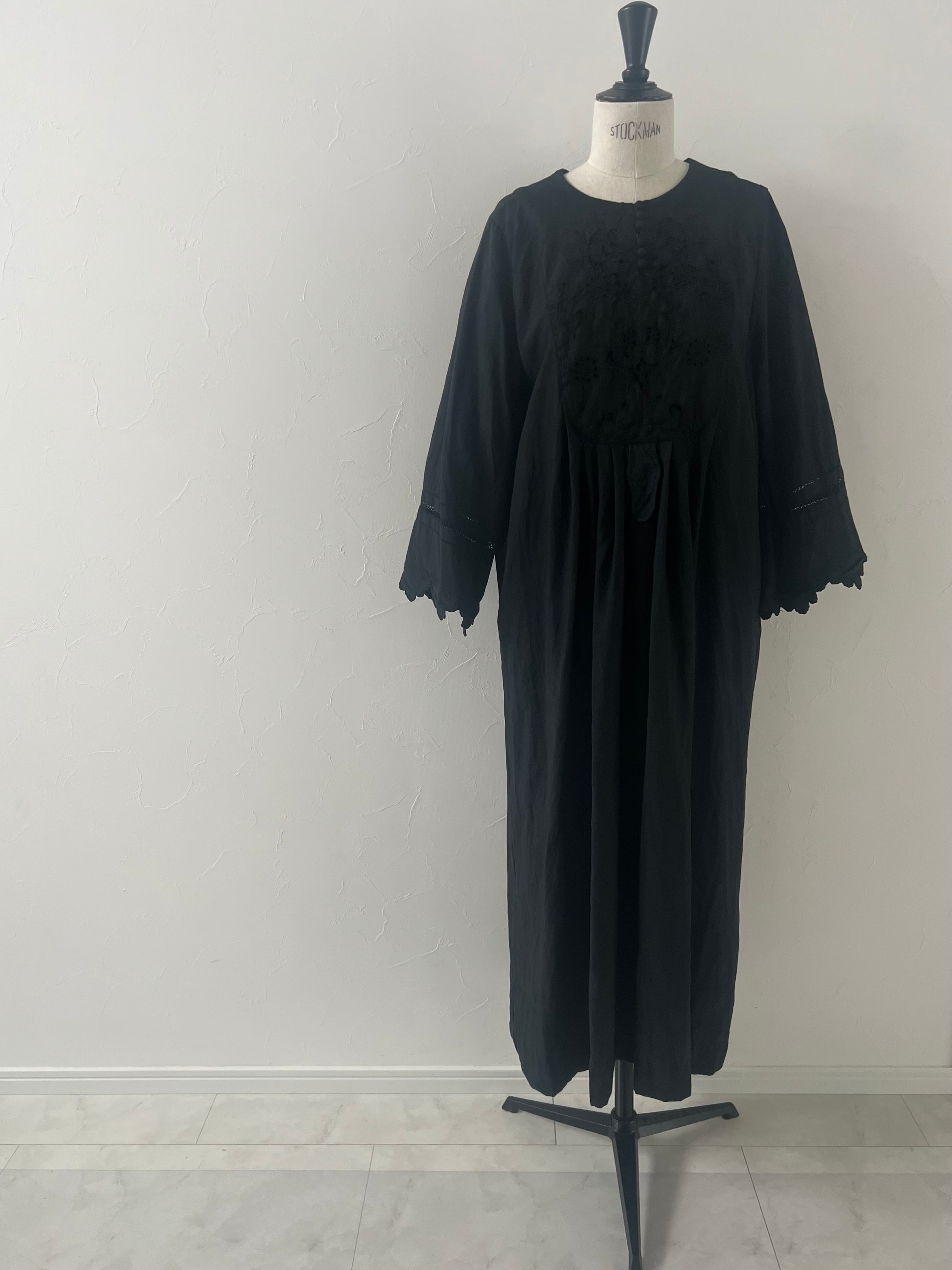 アンティークcutwork刺繍胸元くるみボタン農父ワンピース【robe NOlRE】