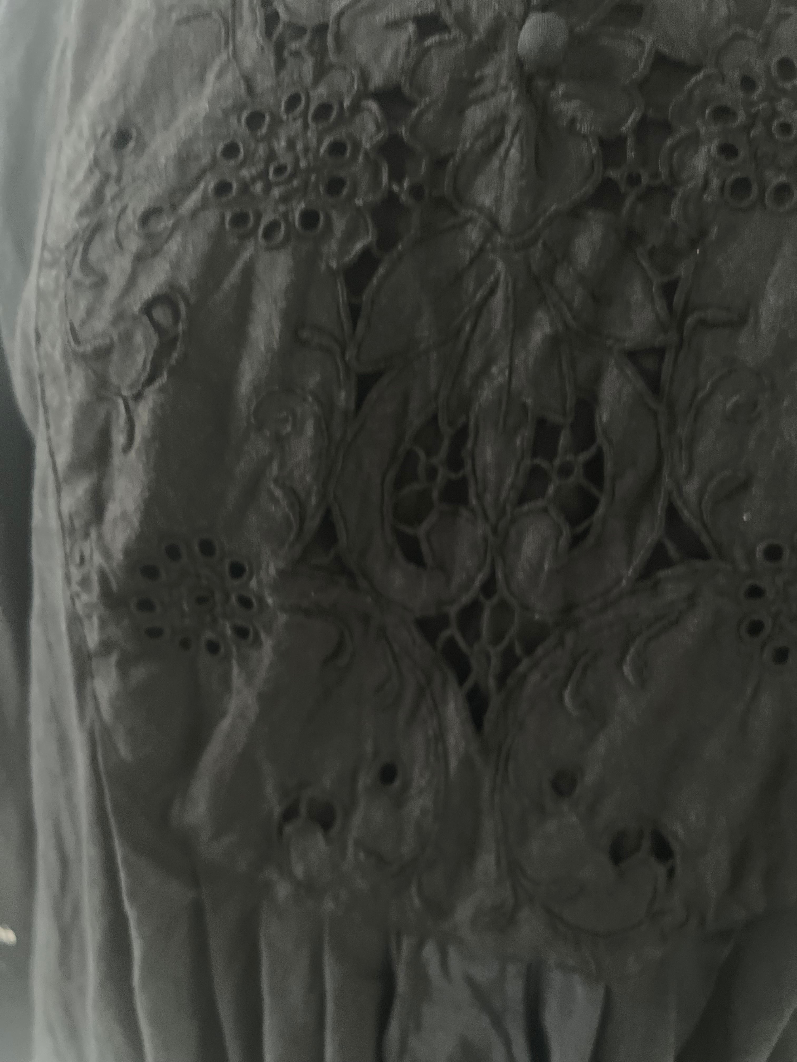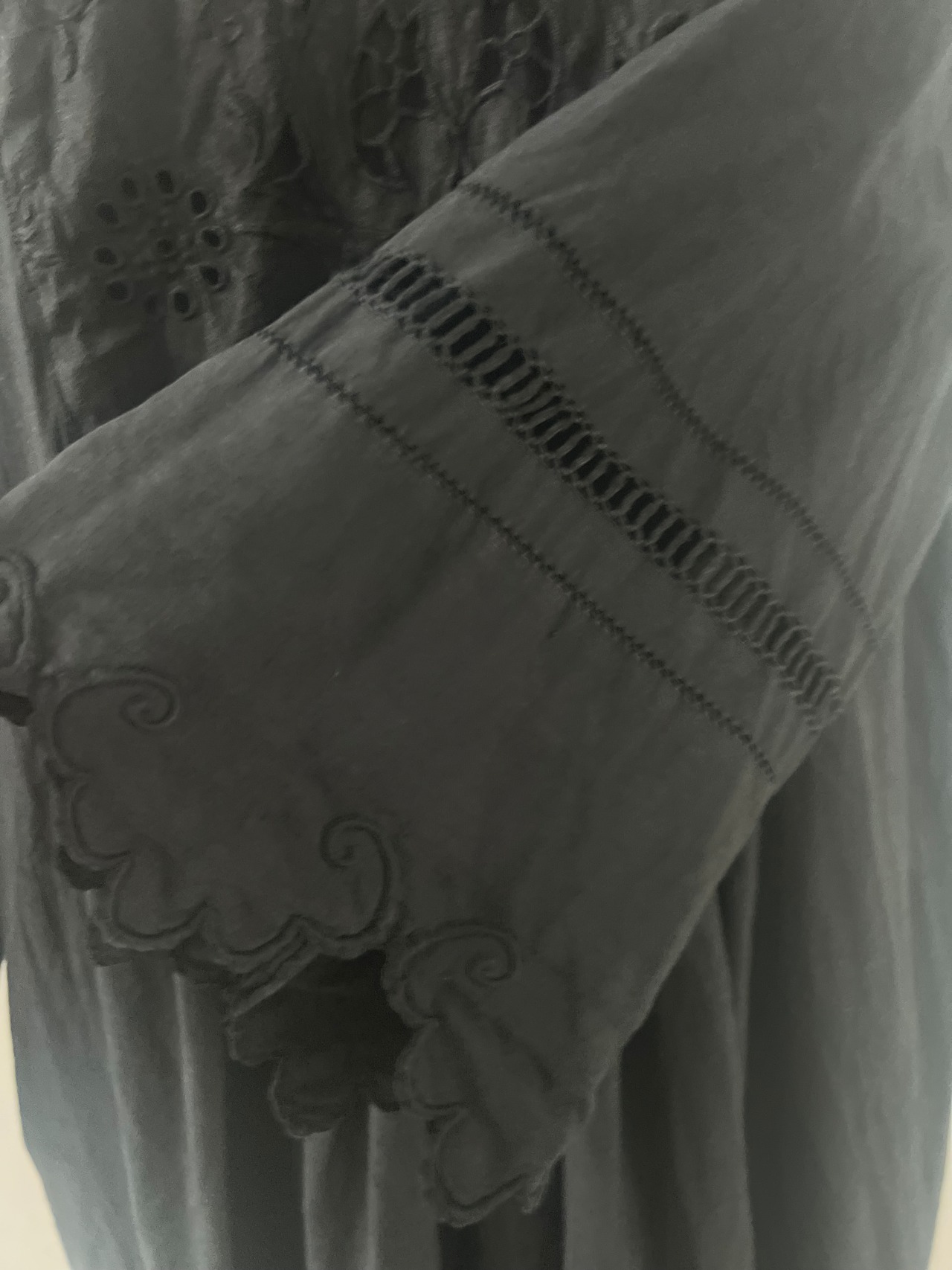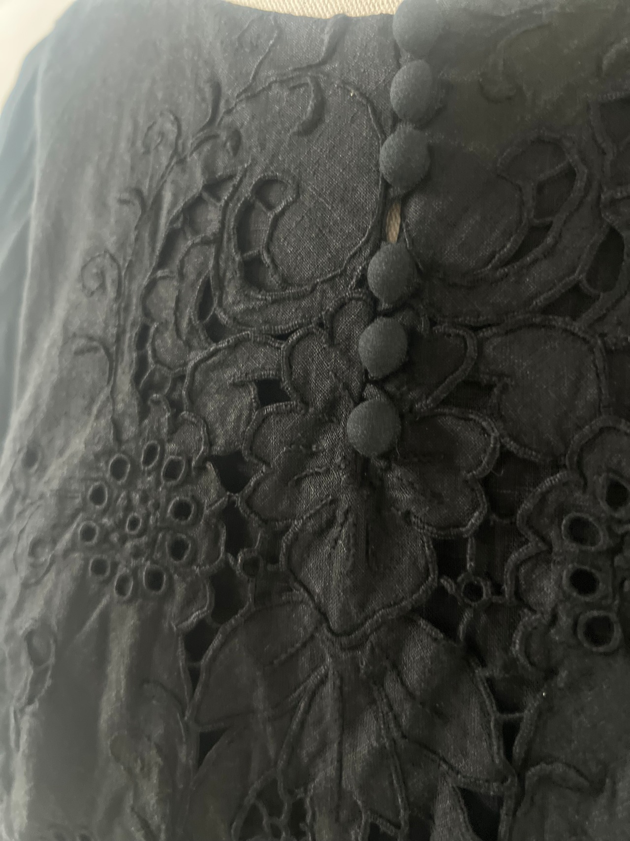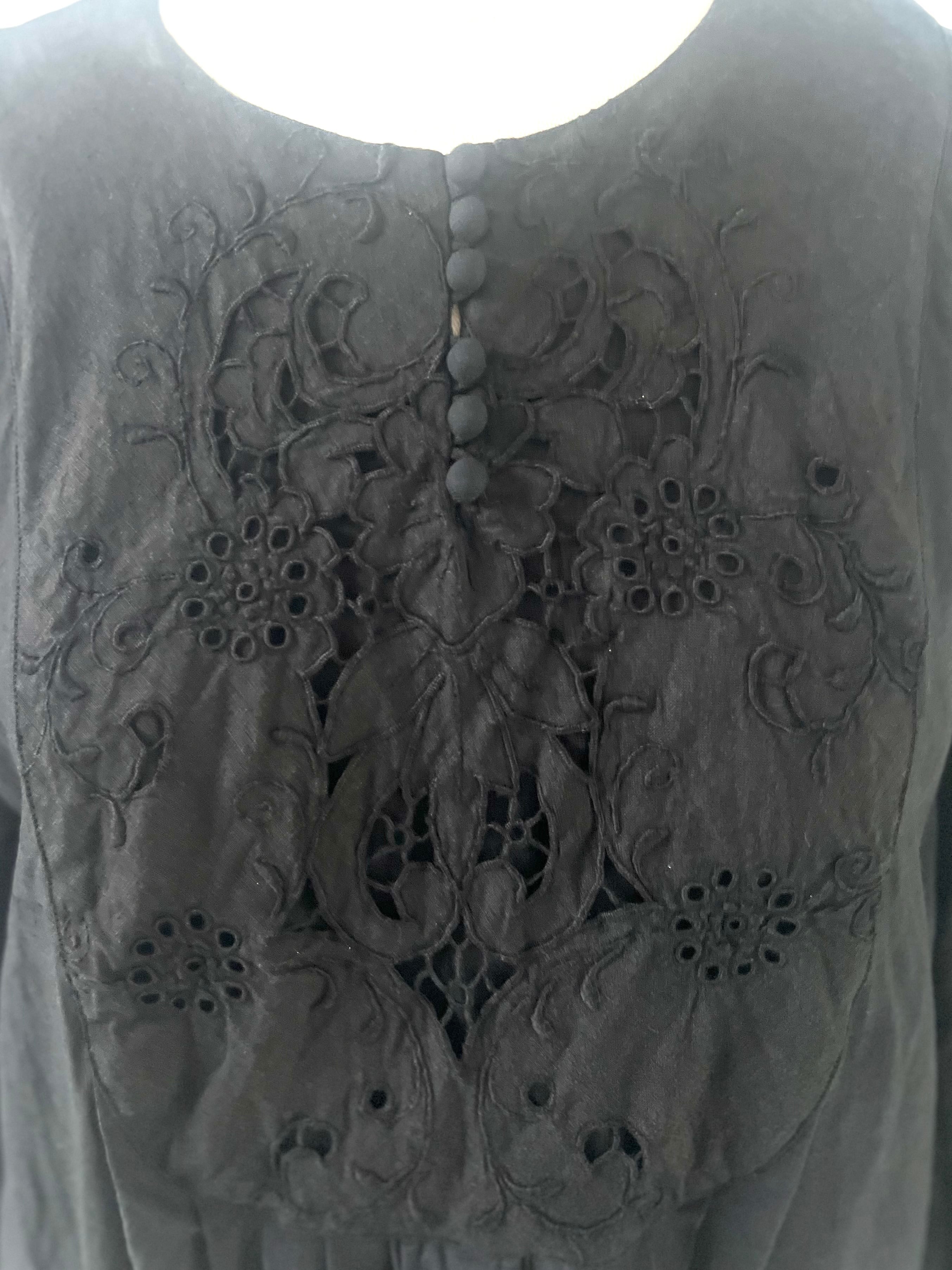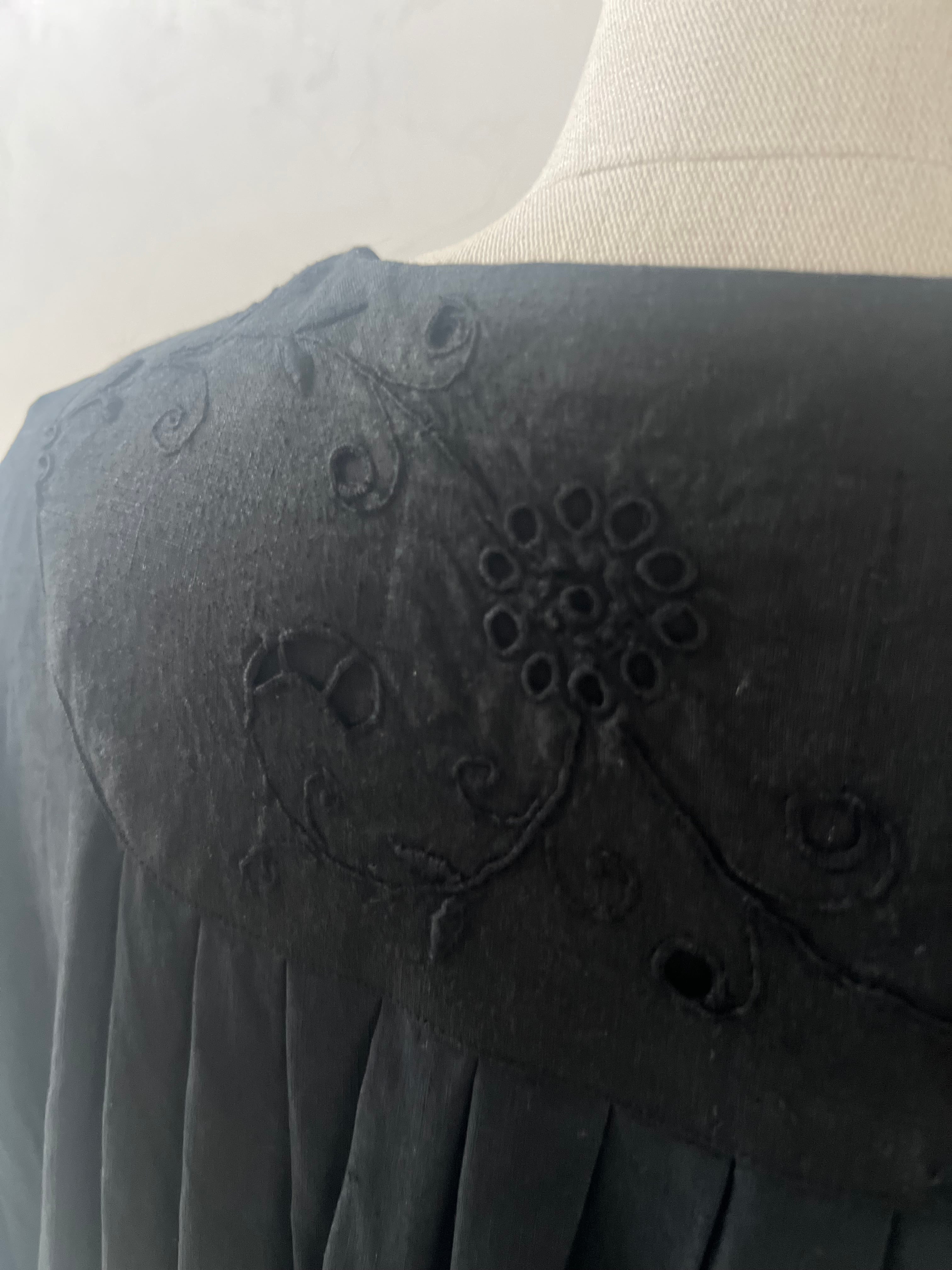 ∴ᴀʟʟ ᴀɴᴛɪǫᴜᴇ * アンティークcutwork刺繍胸元くるみボタン農父ワンピース【robe NOlRE】