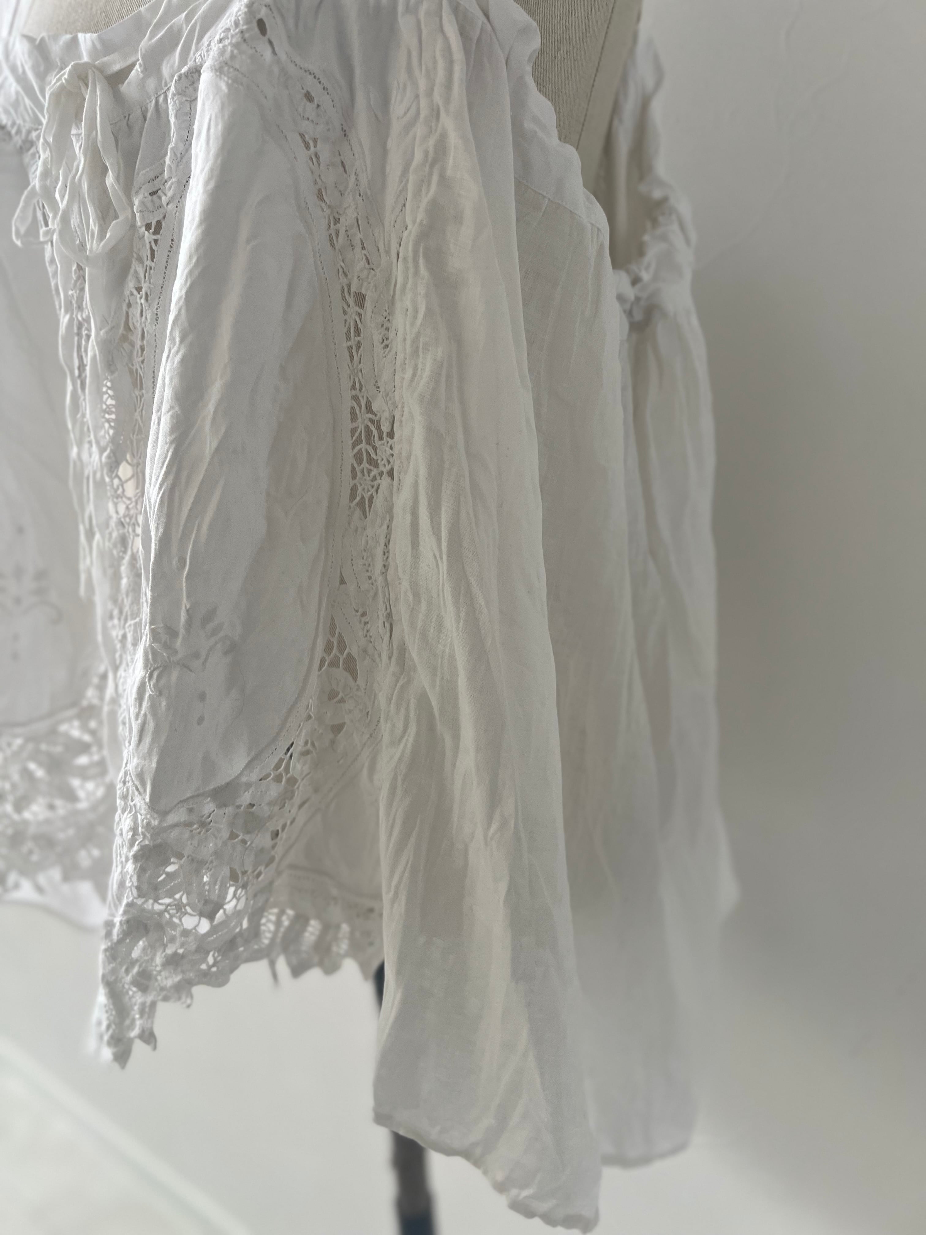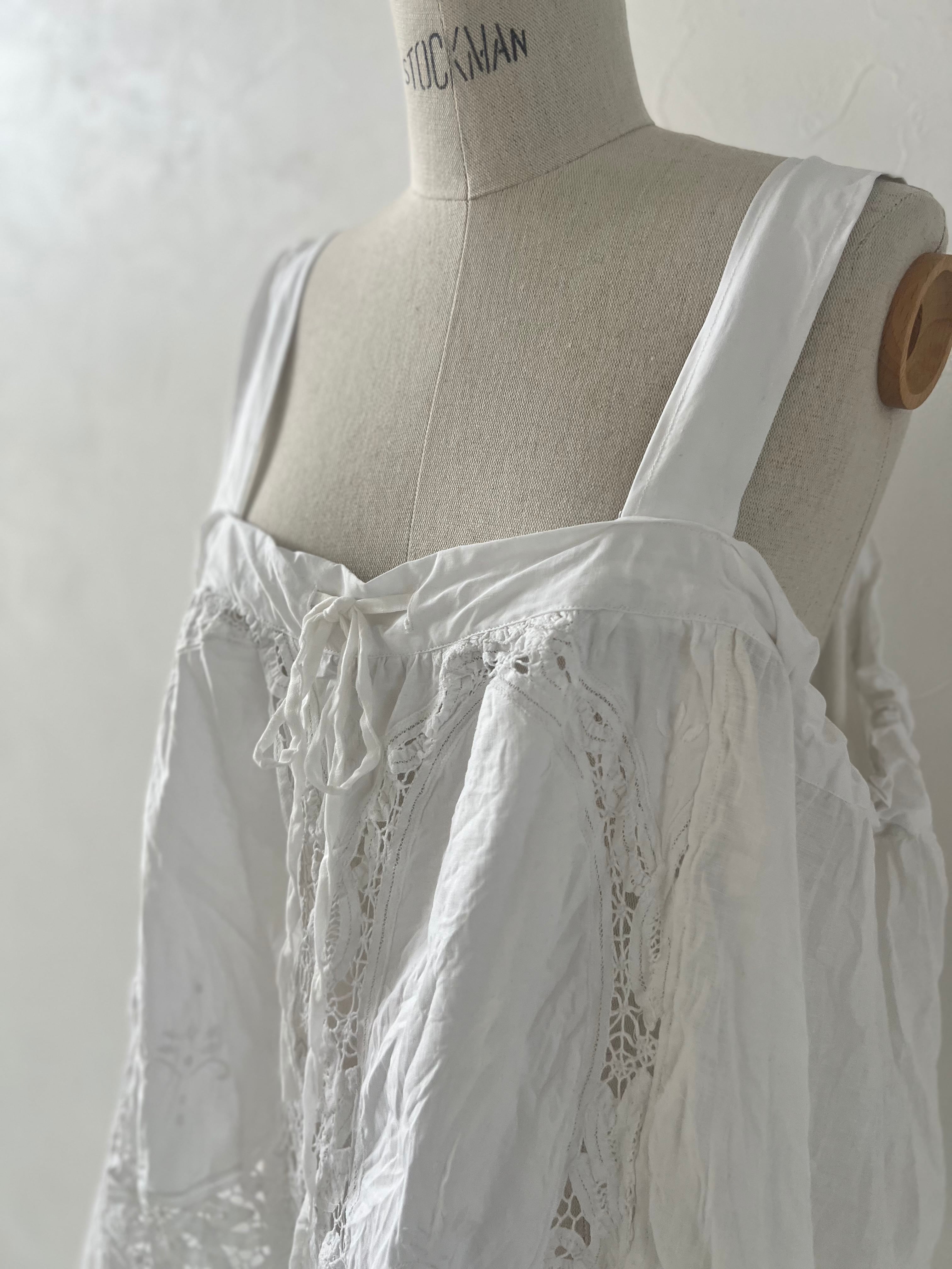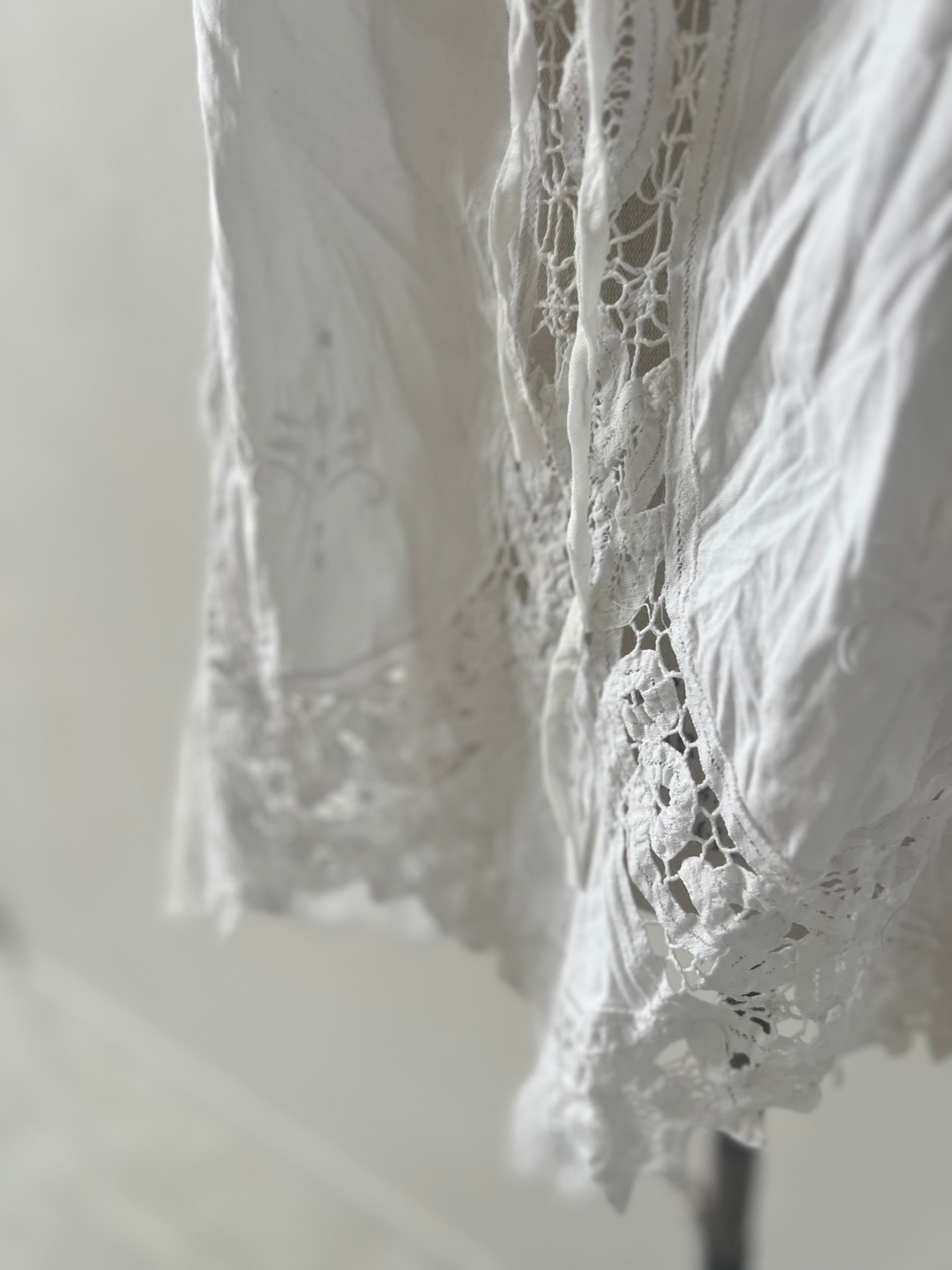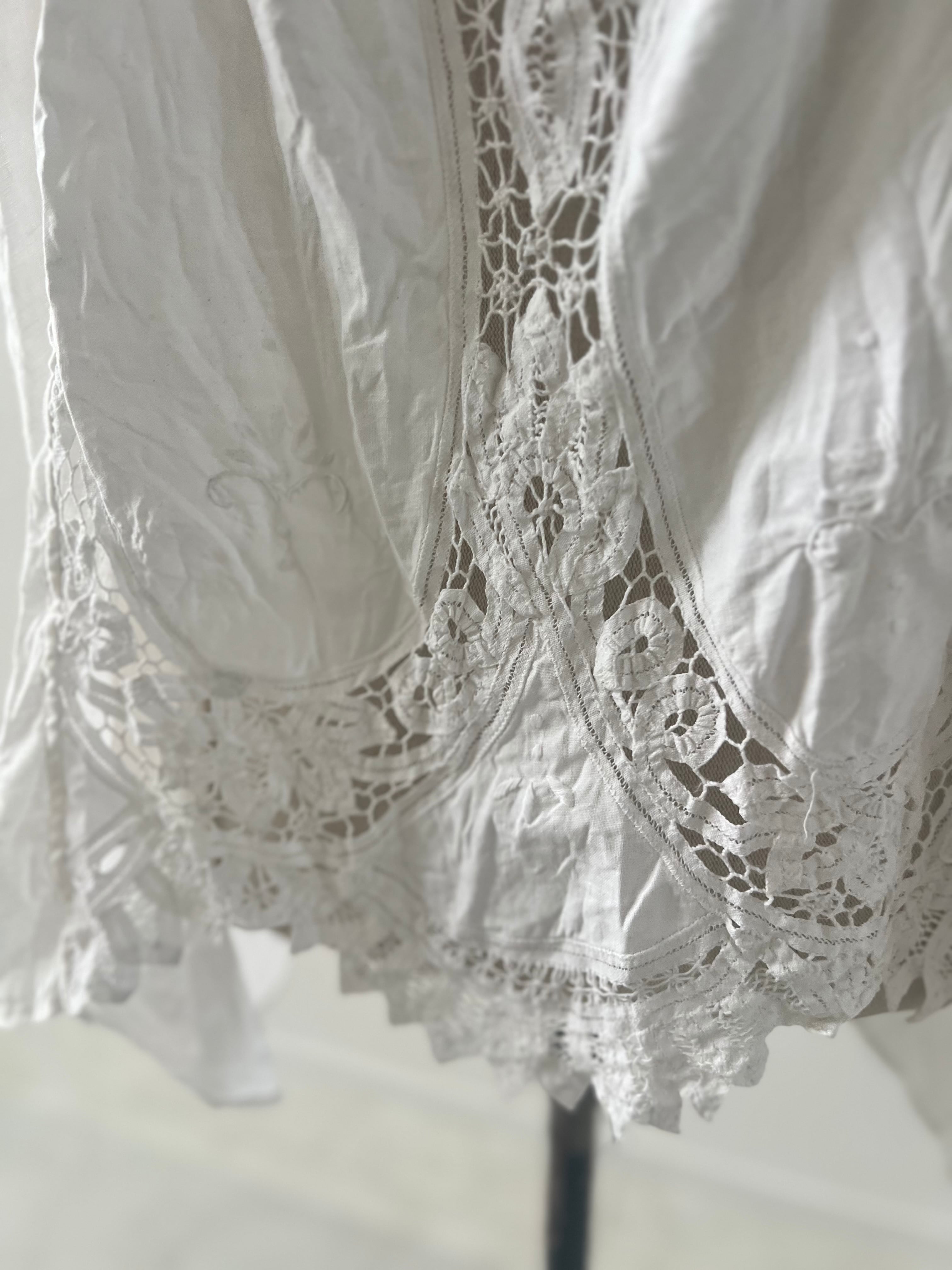 アンティークならではの風合いを持つ美しいバテンレースとリネンは、使い込むほどに柔らかく、より深い表情へなっていきます。