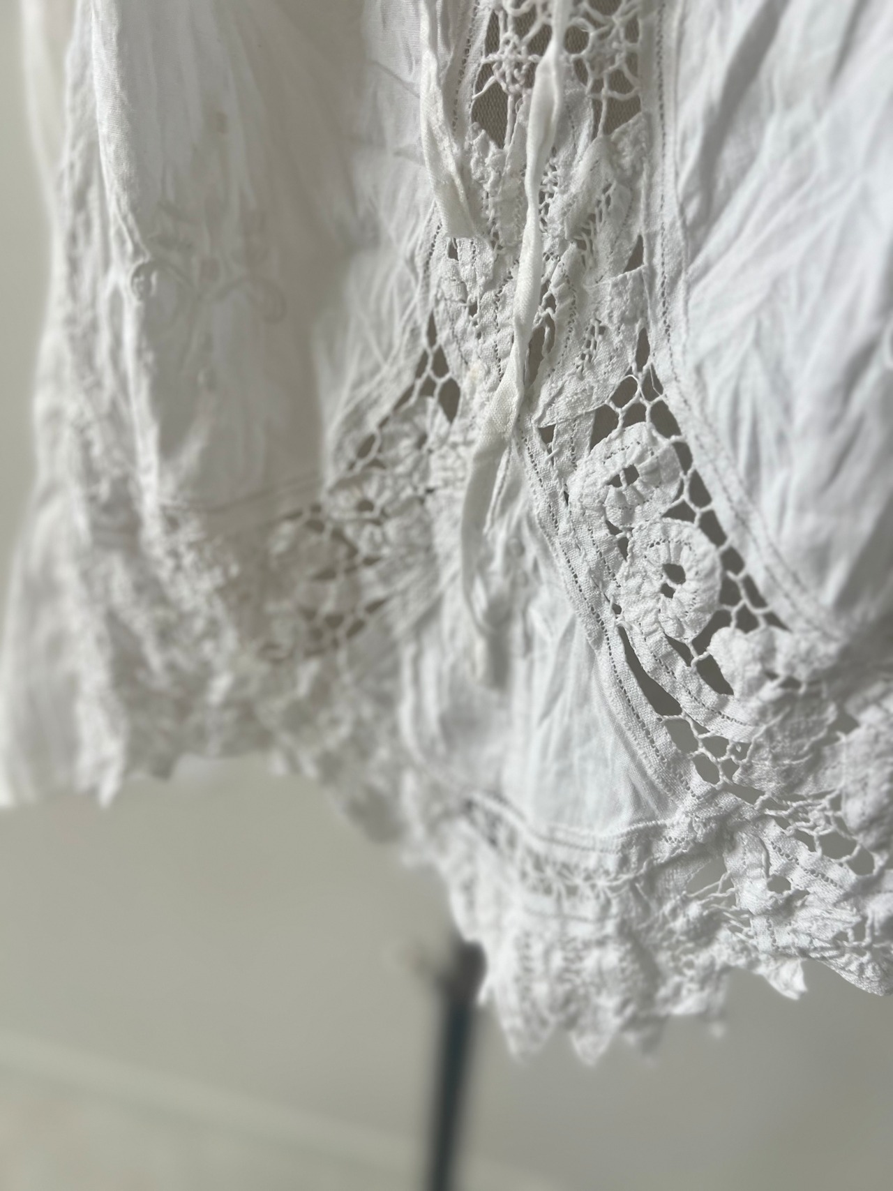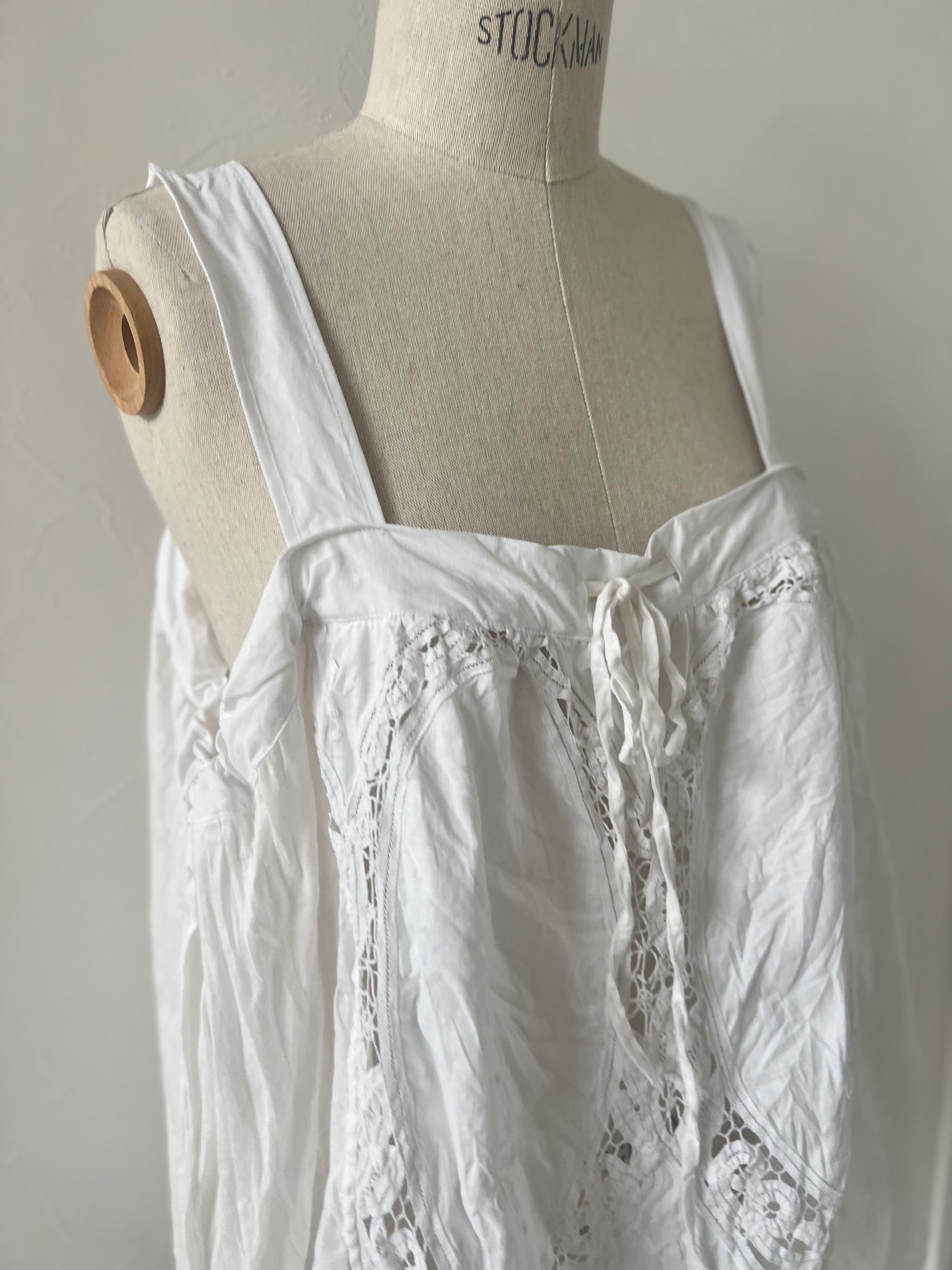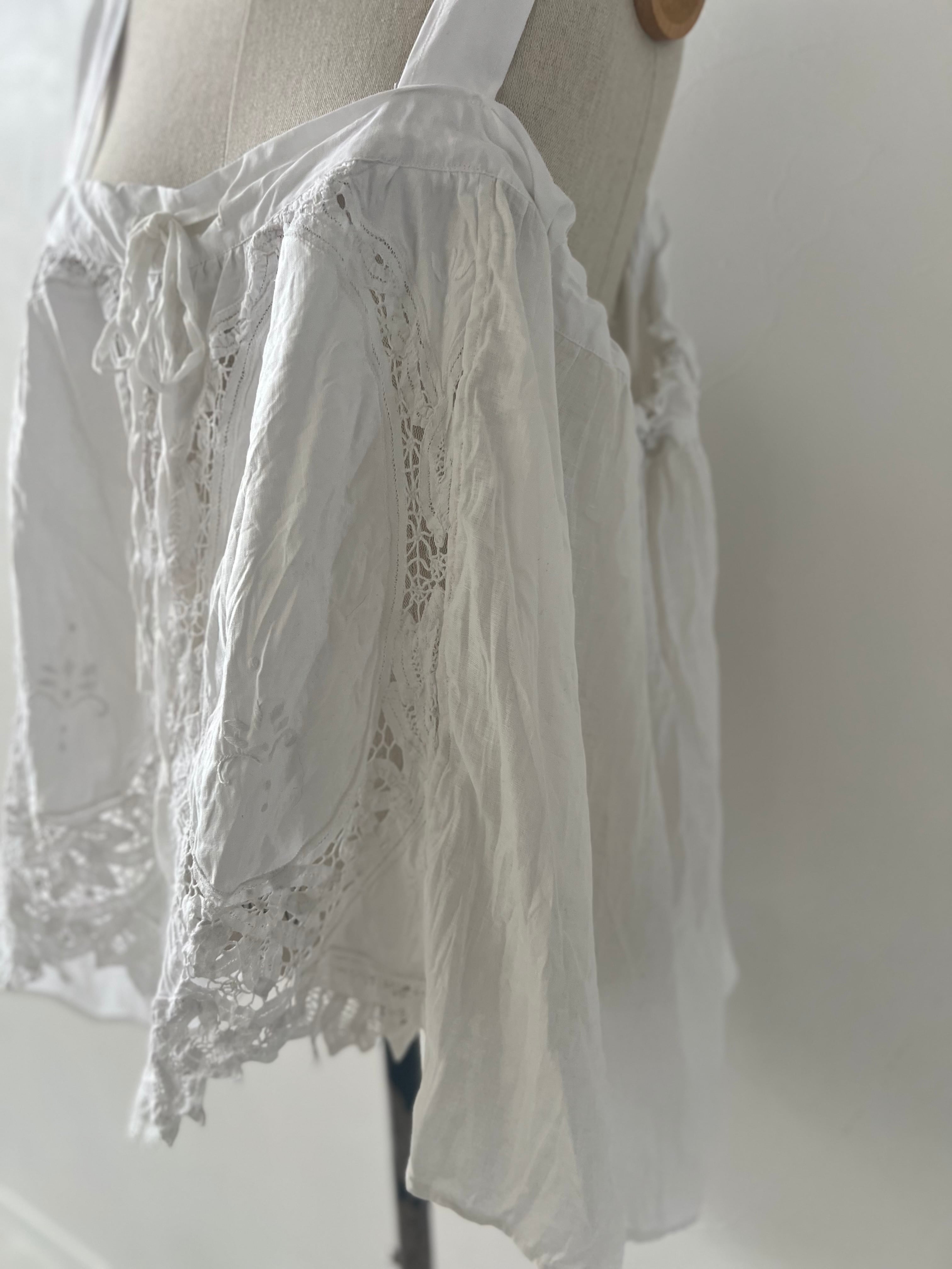 アンティークならではの風合いを持つ美しいバテンレースとリネンは、使い込むほどに柔らかく、より深い表情へなっていきます。