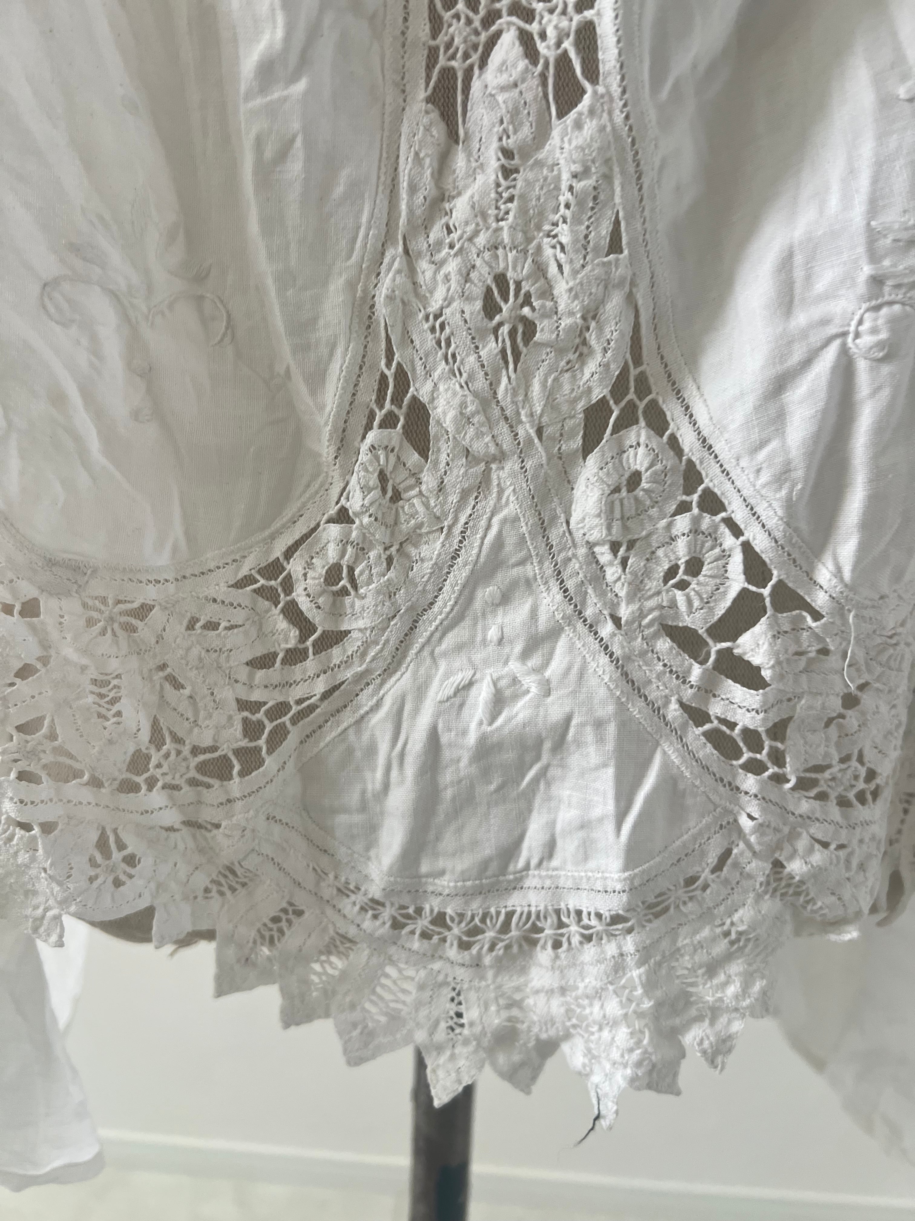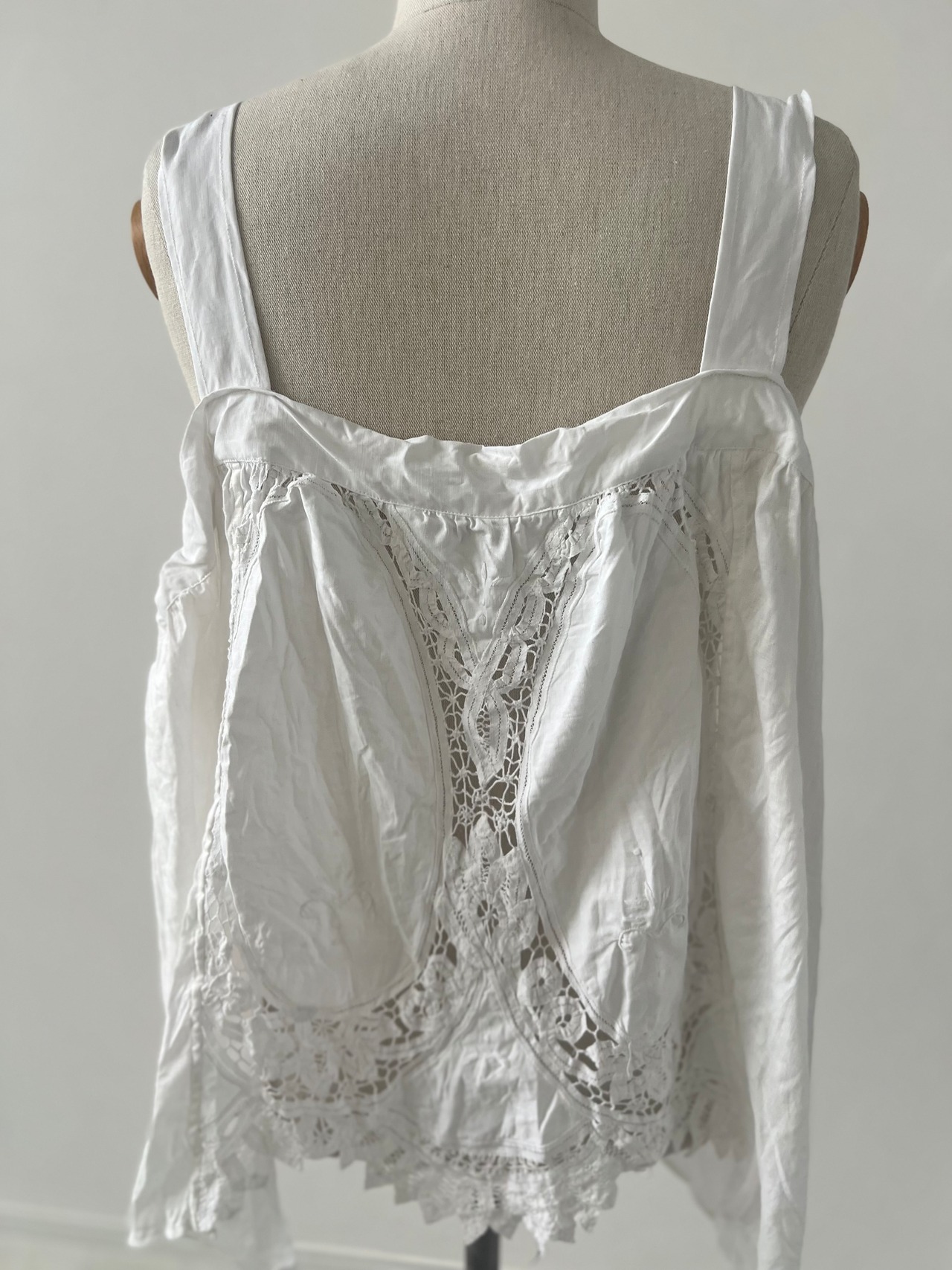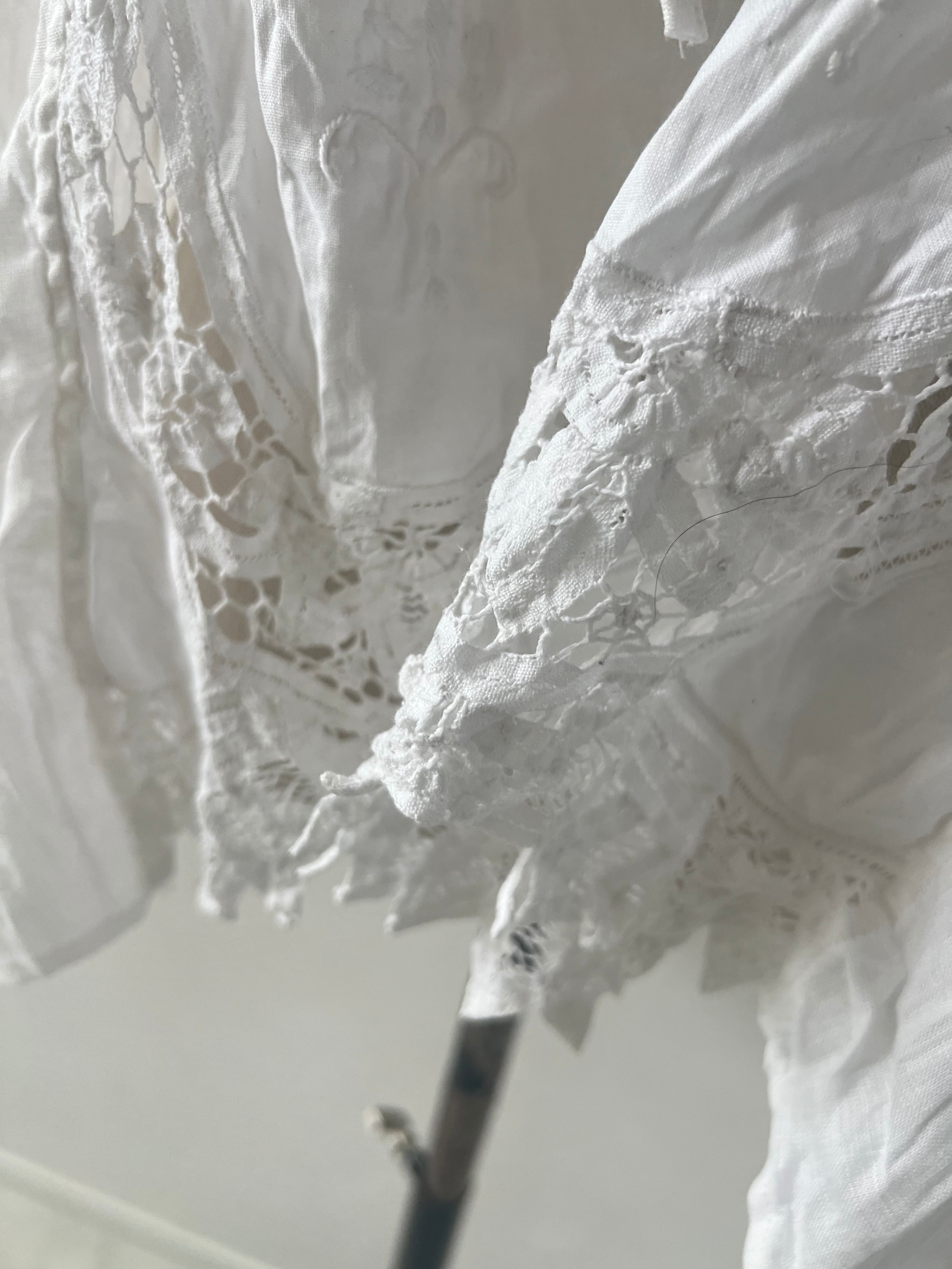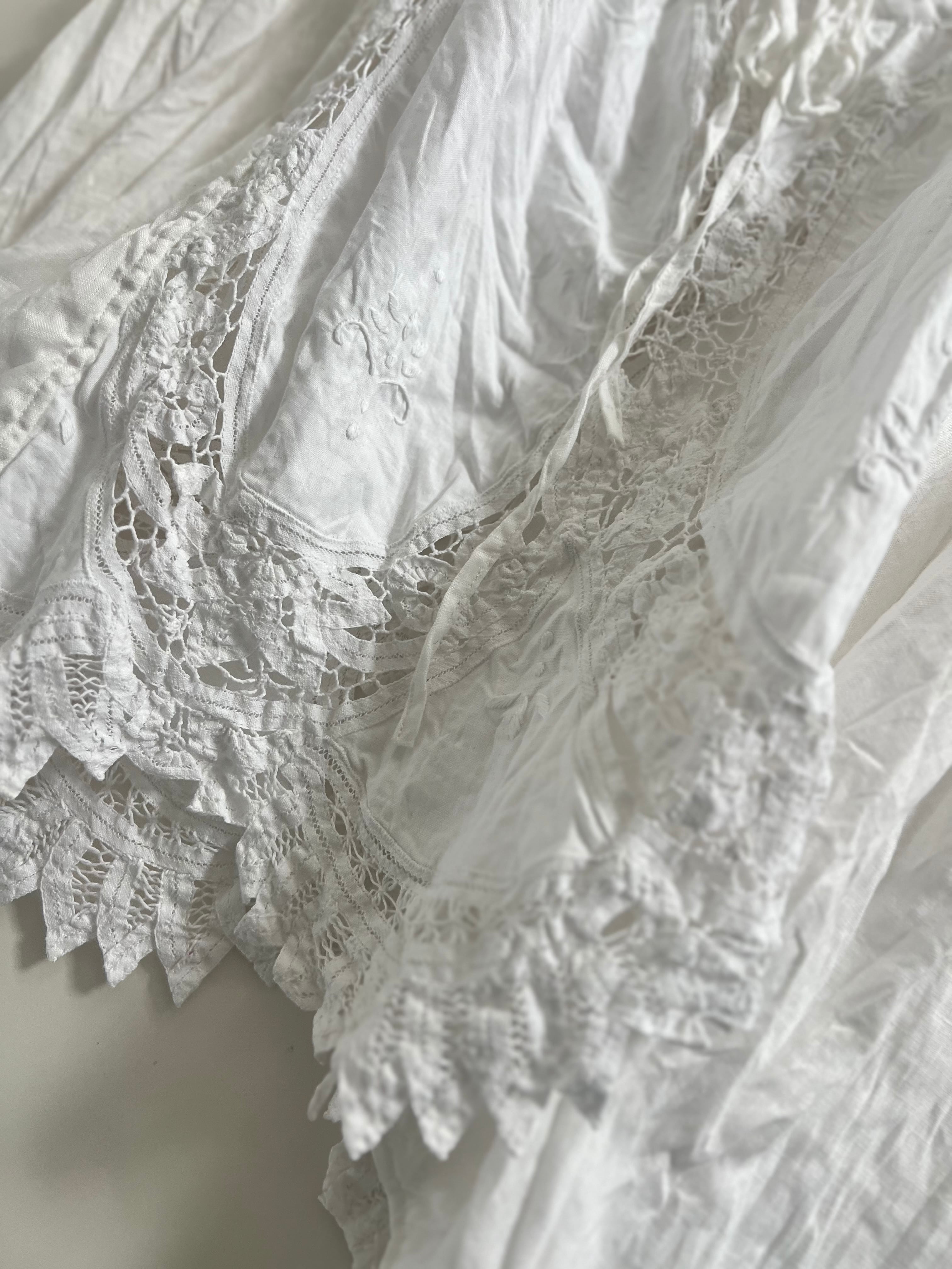 アンティークならではの風合いを持つ美しいバテンレースとリネンは、使い込むほどに柔らかく、より深い表情へなっていきます。