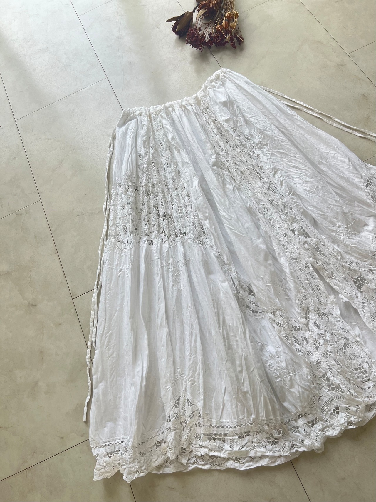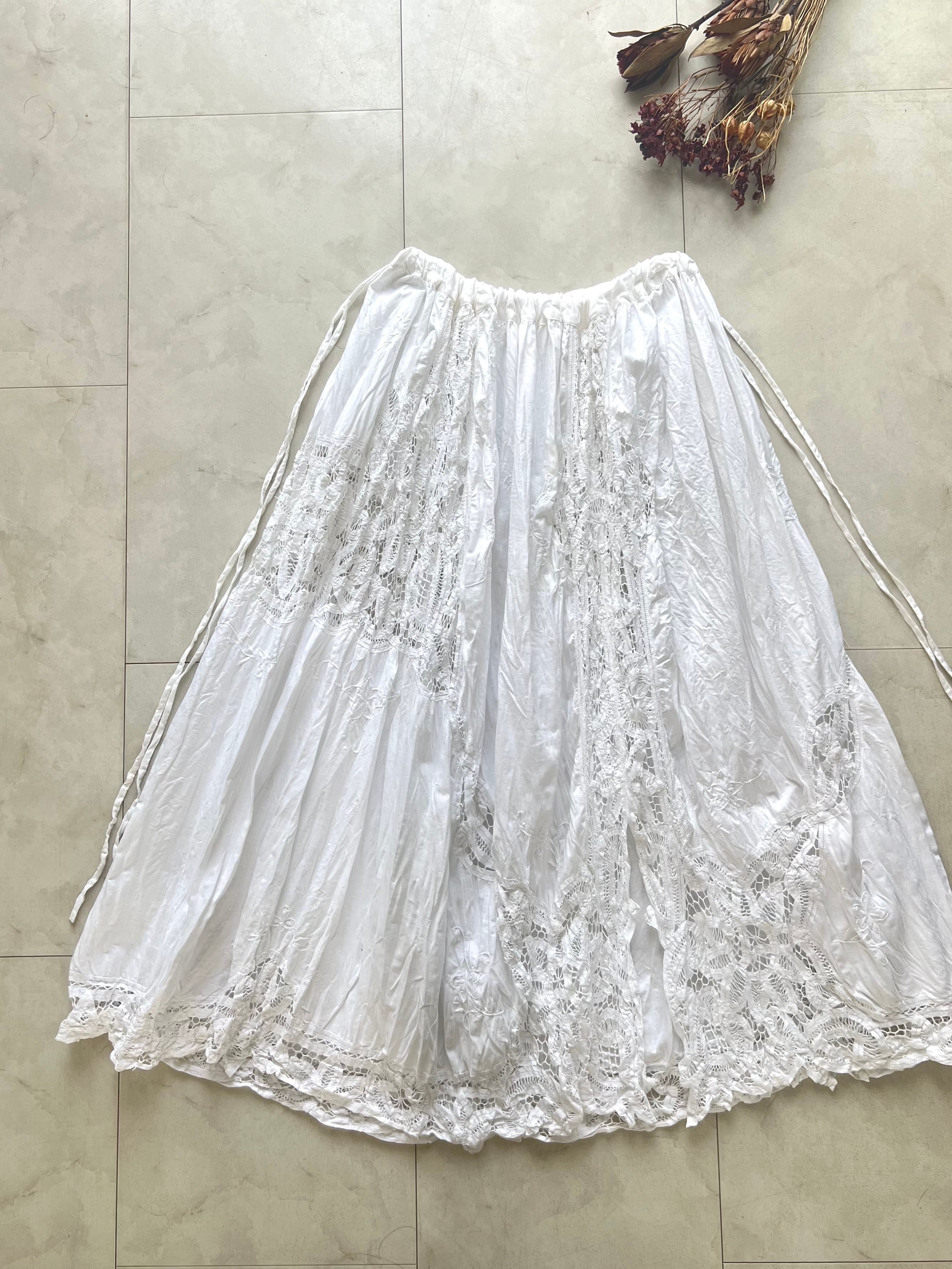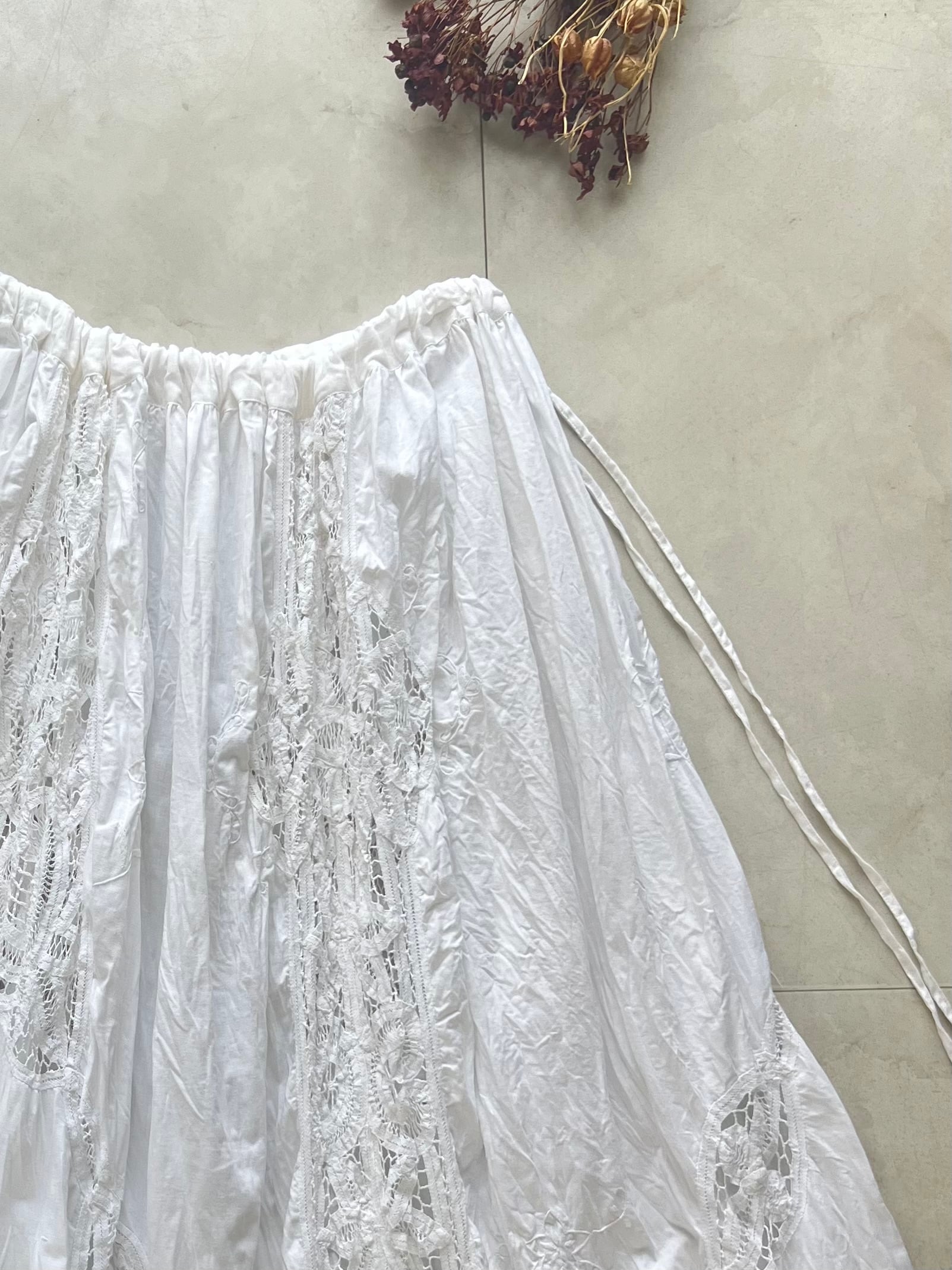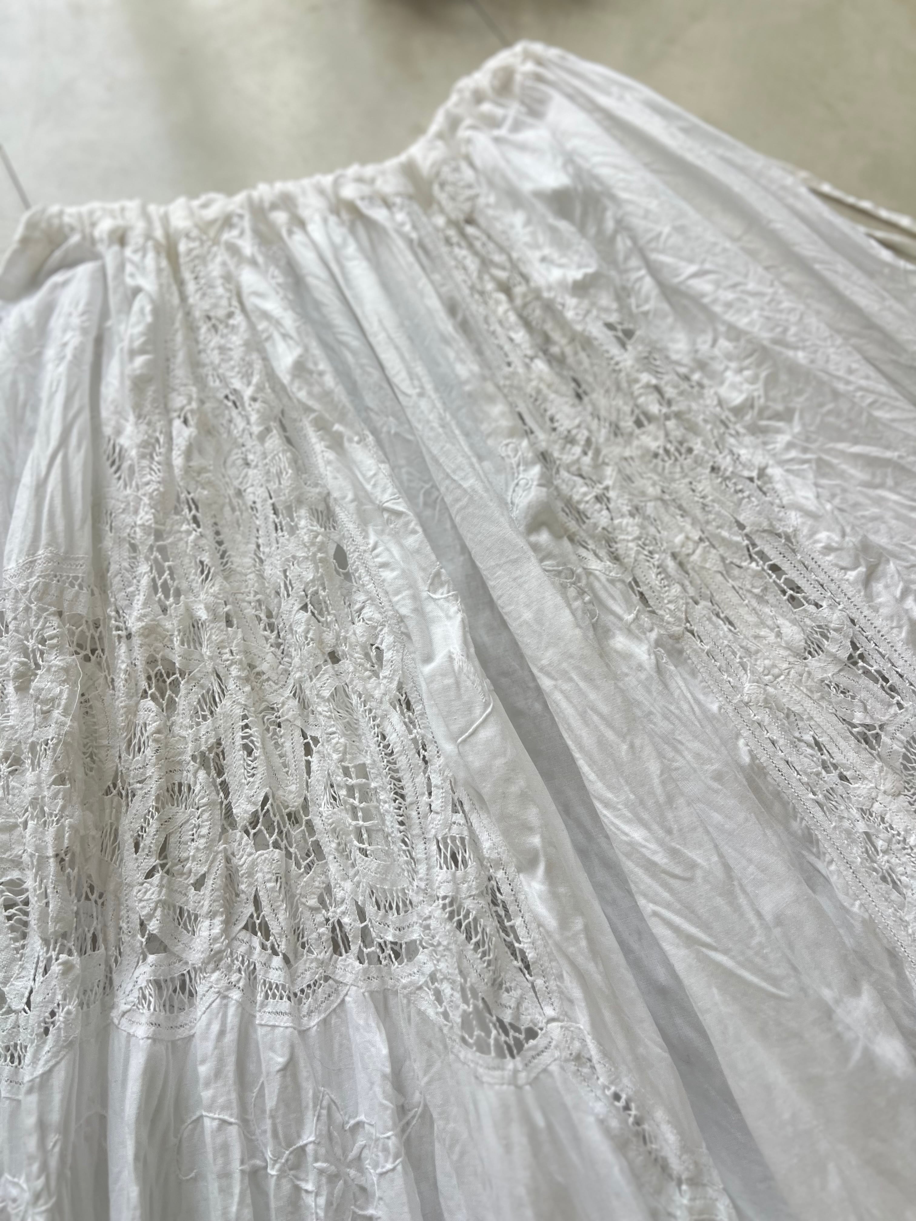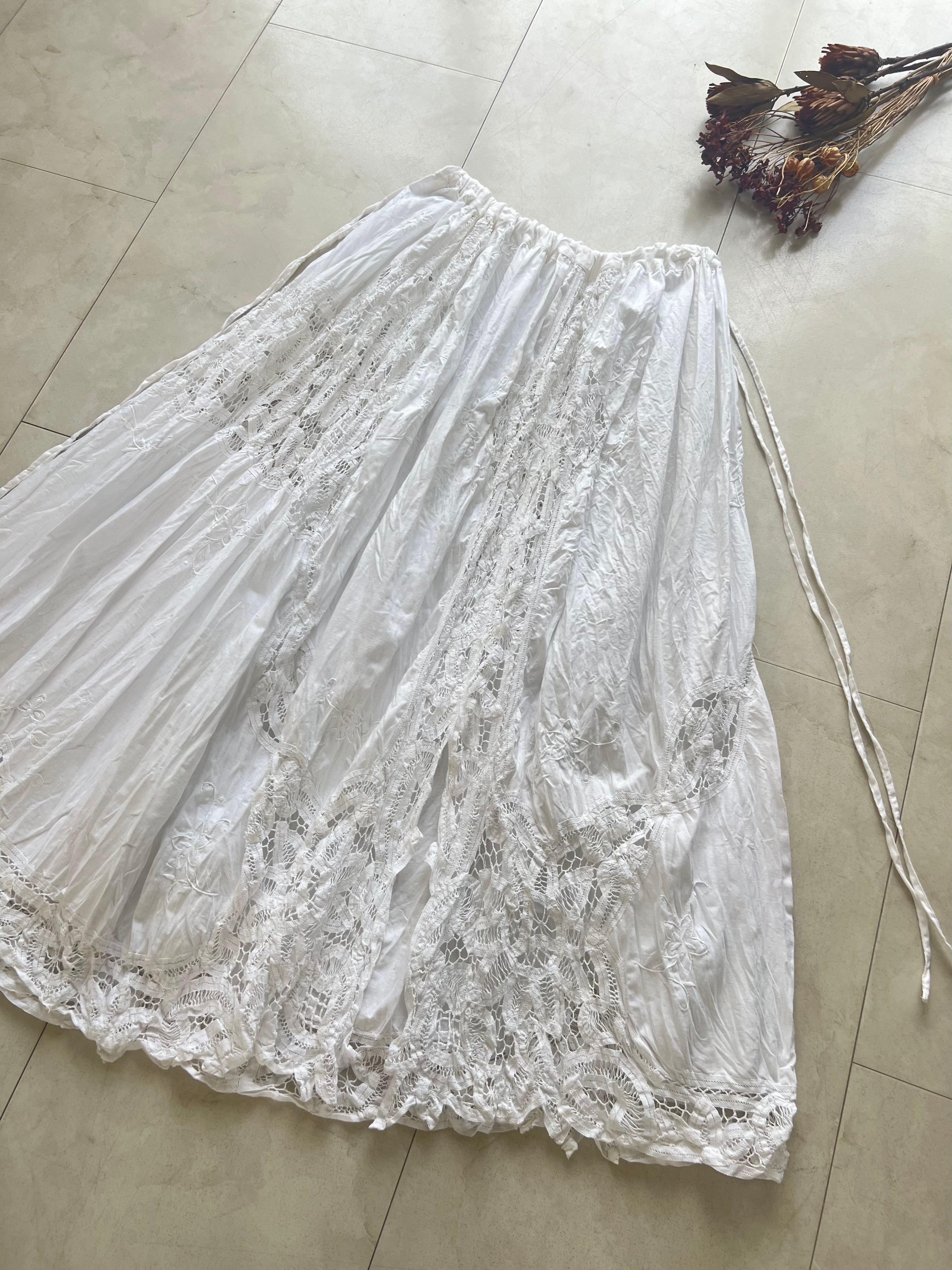 立体的で繊細な技法が詰まったアンティークバテンレースを、贅沢に全面に施したスカートです。