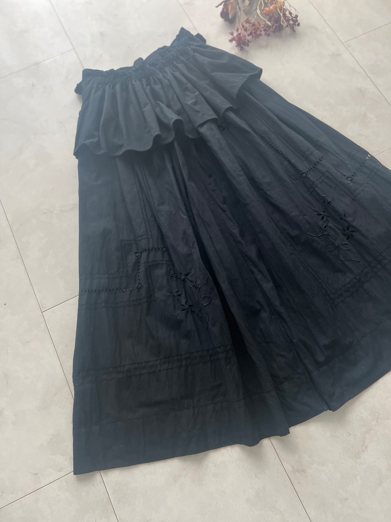 ∴アンティークモノグラム刺繍MSとドロンワーク2段スカート【robe NOlRE】