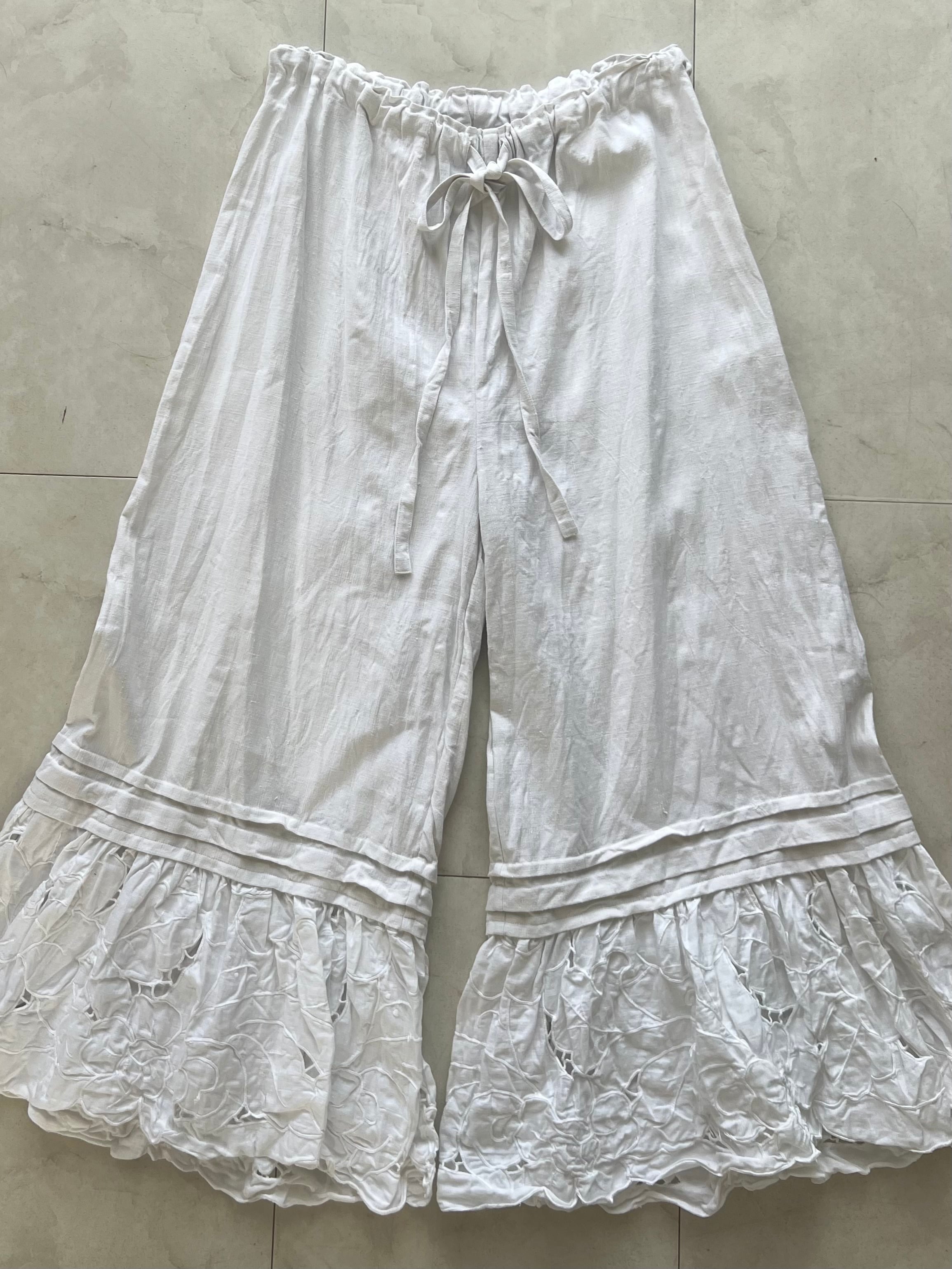 ∴ᴀʟʟ ᴀɴᴛɪǫᴜᴇ * アンティークリネンとcutworkレースのピンタックパンツ